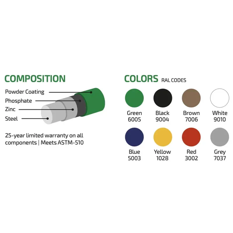 Размеры столбов: 50x50 мм, 50x70 мм, 60x60 мм, 70x100 мм. Другие размеры доступны по запросу.